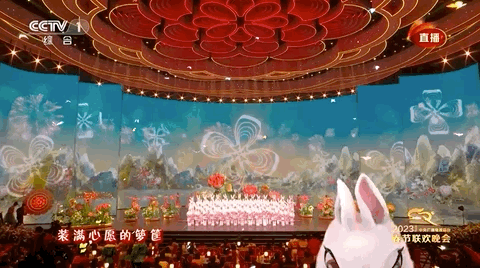 开场的《花开种花家》音乐一响,喜气洋洋的节日氛围扑面而来。通过实时双耳渲染监听,线上观众们也能跟着音浪一起合唱、欢呼,这就是大家经常提到的“颅内蹦迪”。